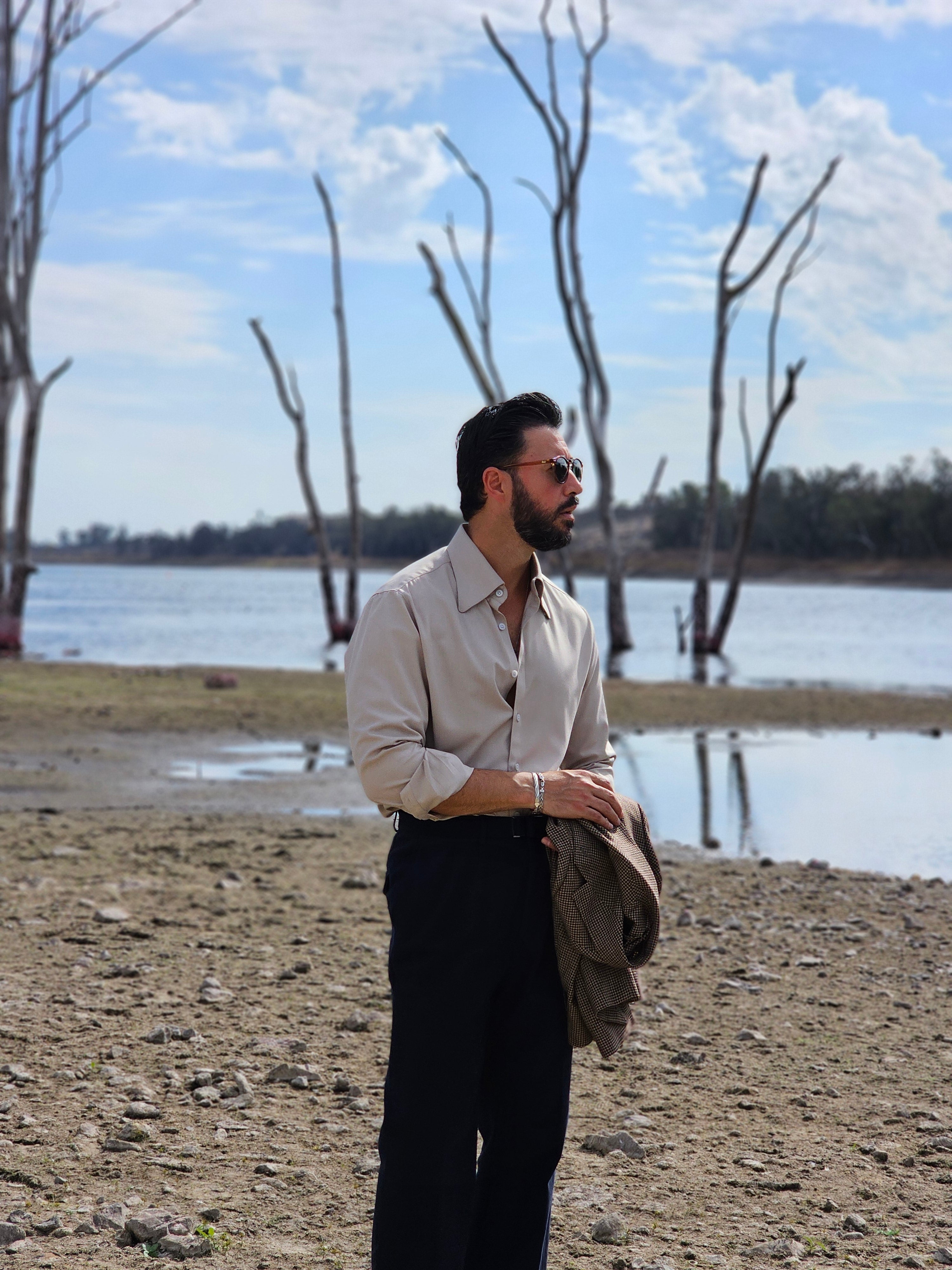 Wear it open-collared with tailored trousers for relaxed elegance, paired with chinos for resort refinement, or layered under a lightweight jacket for elevated casual sophistication.